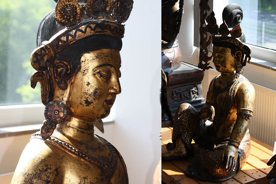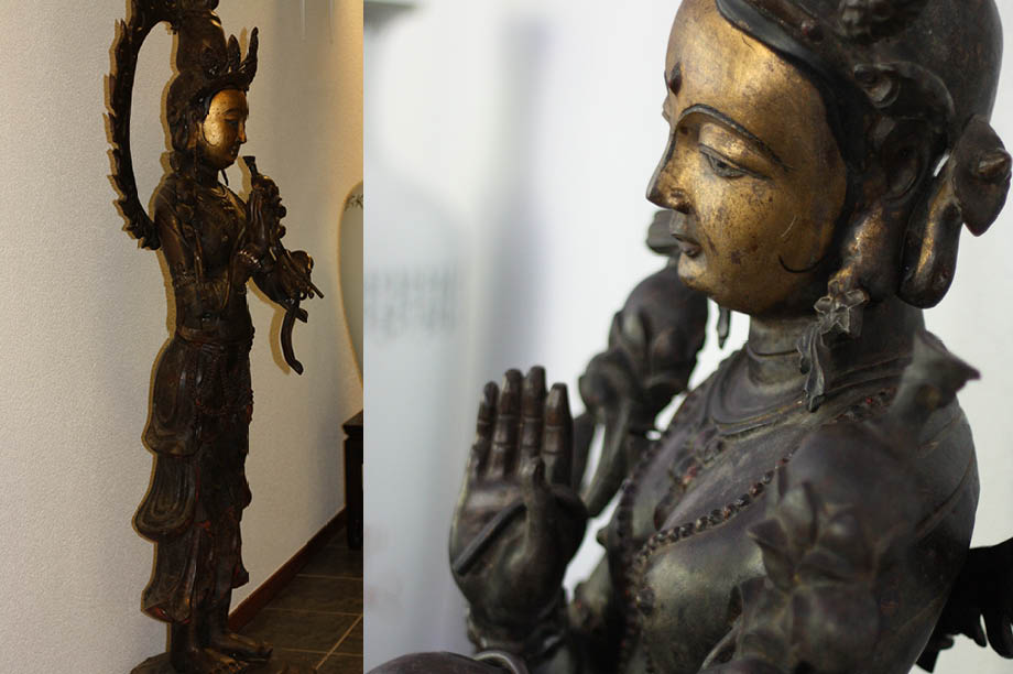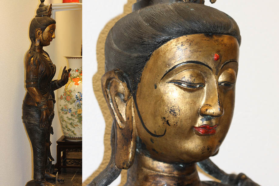 Buddhism is one of the four biggest religions in the world. It originated from 600 years B.C. in India.  After coming into China in Han Dynasty (206B.C.-220), interacting and absorbing Chinese Traditional Culture, it became an  important  part  of  Chinese Feudel Culture. Each period of time, the Statuaries of Buddhism refleced clearly the characteristics of the period and every regions formed different styles.